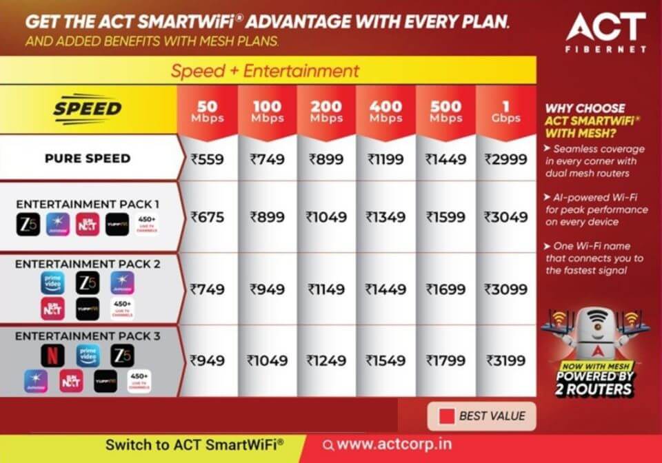 At Fibernet Plan, we are proud to bring you the best internet experience through ACT Fibernet in Bangalore, one of India’s most trusted broadband providers. We specialize in offering ACT’s high-speed fiber broadband services that deliver exceptional speed, stability, and performance for both home and business users. With cutting-edge fiber optic technology, ACT Fibernet ensures lightning-fast data transfer, allowing you to stream, work, study, and play without interruptions.Our goal at Fibernet Plan is to make the power of ACT Fibernet accessible to everyone with flexible packages and affordable pricing. Whether you’re looking for entertainment, remote work support, or online learning, our ACT Fibernet plan in Bangalore is designed to meet your specific needs. Enjoy unlimited data, consistent speeds, and seamless connectivity across multiple devices, making it the perfect choice for tech-savvy households and professionals.We provide a variety of ACT Fibernet schemes in Bangalore to suit different internet usage levels. From basic home plans to high-speed enterprise solutions, each plan is designed with reliability, speed, and customer satisfaction in mind. With advanced security features and minimal downtime, ACT Fibernet ensures uninterrupted internet access so you can stay connected at all times.Choosing ACT Internet in Bangalore through Fibernet Plan means getting more than just fast connectivity — it’s about experiencing true digital freedom. Our team ensures quick installation, transparent billing, and dedicated customer support, making your broadband experience smooth and worry-free. With our expert service, you can trust that your internet needs are handled by professionals.Join thousands of satisfied users who rely on ACT’s broadband network every day. At Fibernet Plan, we are committed to providing top-tier service, affordable plans, and round-the-clock assistance. Experience the future of internet connectivity today with ACT Fibernet in Bangalore — where speed, reliability, and affordability come together to keep you connected effortlessly.